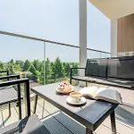Das Apartment 407 Morskich Opowiesci Przy Plazy - Perlowa Przystan - Holiday City mit Blick auf den Garten bietet einen Balkon und eine Sitzecke an. Hier gibt es zudem 1 Bad. Außerdem gibt es hier eine getrennte Toilette und eine Dusche.